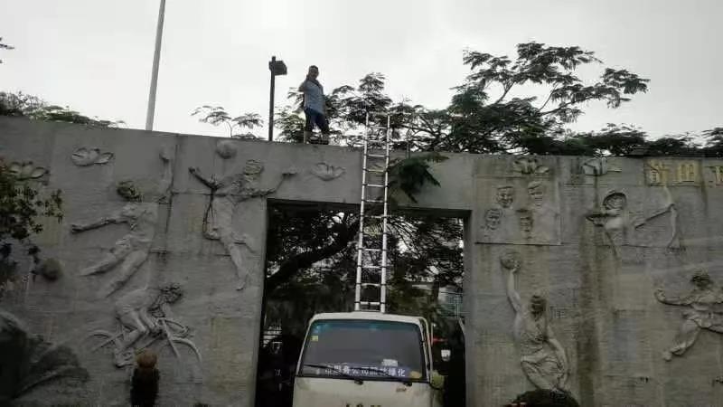 體育中心南廣場(chǎng)(游泳館)前浮雕高空作業(yè)