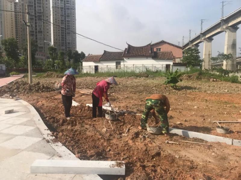 為確保小游園建設(shè),園林人不畏酷暑堅(jiān)持在一線工作